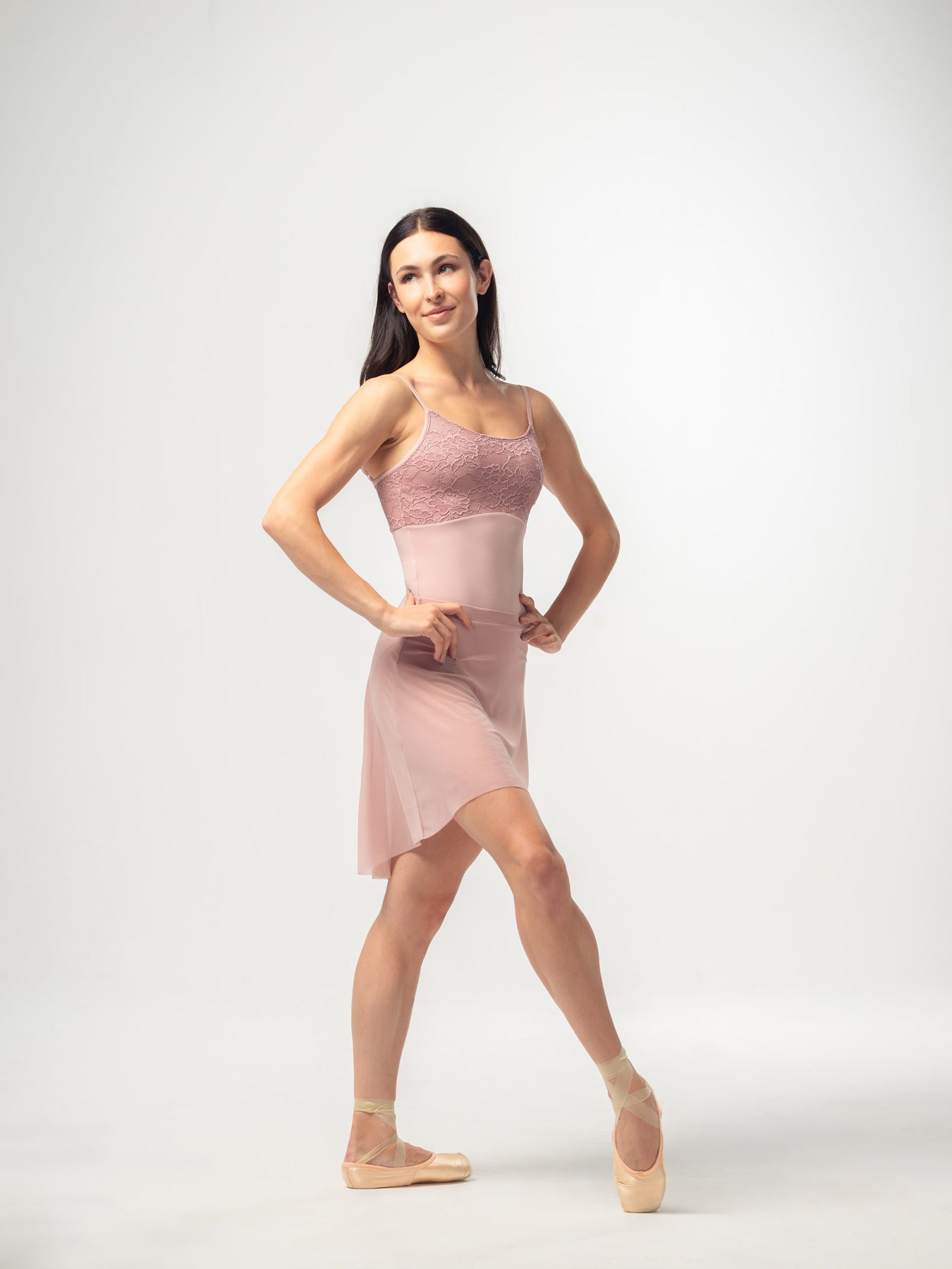 Embrace delicate beauty with the Chloe Rose Leotard. This exquisite camisole leotard in a soft rose hue features intricate floral lace detailing on the bust and back, creating a graceful silhouette.